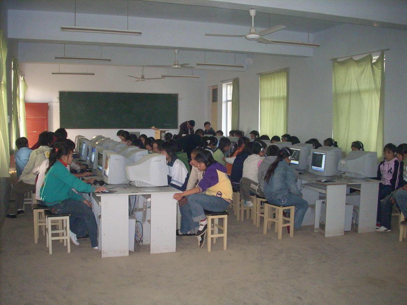 在西部故事创作中,我们首先面临的困难就是电脑的问题,我们学校微机室面积很大,但里面空当当的,只有27台电脑,而我们每个班有70多名学生,这就意味着两名学生围着一台电脑还不够,经常是三人围着一台电脑上课.所以每次上微机课的时候,同学们争先恐后地往机房跑,就是为了争上一台电脑,有的同学因为争不上,所以就不上微机课了,这样,他们的电脑知识连一般的初中学生都比不上,都不会打字.而且,学校里的微机课从周一一直排到周五,每天都排得满满的.我们创作西部故事的学生很难有机会用到电脑.
