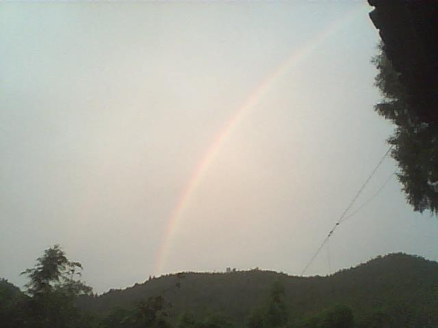 雨过天晴,本来的我还在床上睡大觉,但看到雨停了,便说出来透一透气,但出来一看天空中出现了彩虹,心中是异常的兴奋,高兴极了,跟着彩虹消去的方向奔跑,因为在我们这个地方彩虹并不多见。