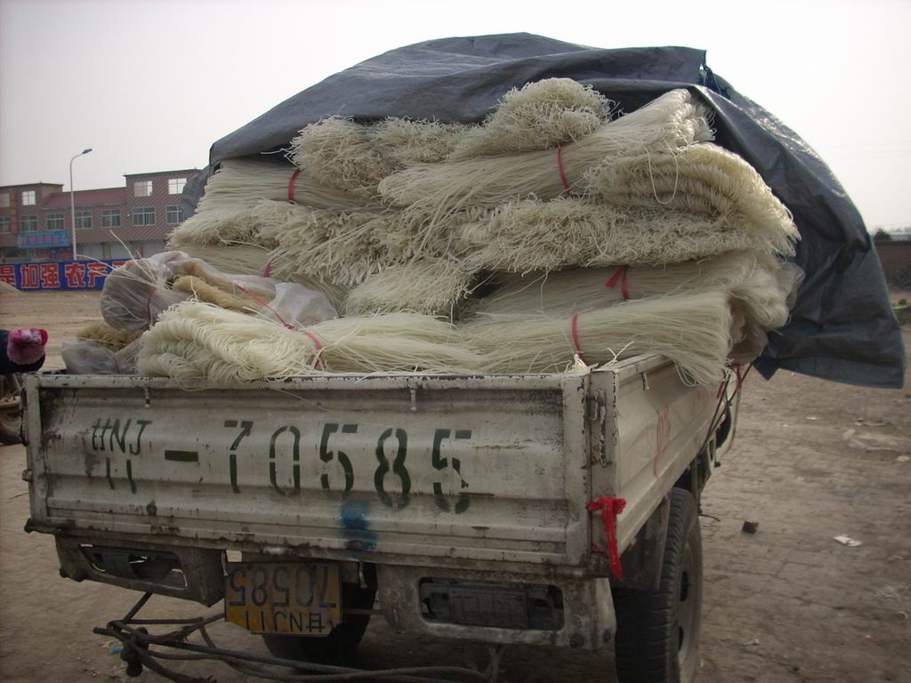 这满满一车粉条.是从相隔110多公里的固原运到我们中宁的,只有将这些粉条全部卖光,换成一张张钞票,才能重返故乡,与家人团聚,没有卖完的时候,就住在最便宜的,没有暖气的旅店里面。