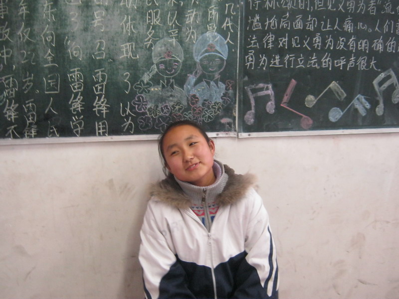 因为班里的墙刚刚粉刷过了,班主任为了保护墙面整洁,所以在容易脏的地方贴上了壁纸,但因为贴的不好被风吹掉了,可是班里来来往往的同学都熟视无睹,只有她主动去把壁纸贴好了。