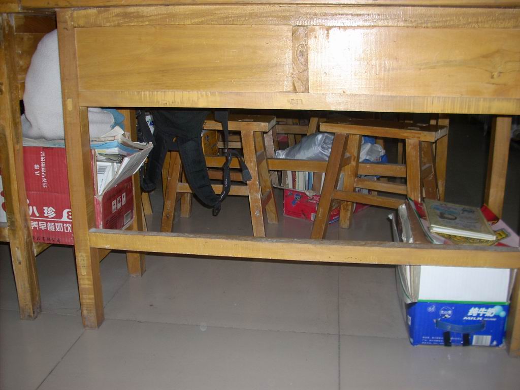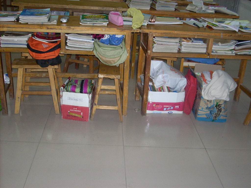一进教室,你就会看到品类繁多的书整齐的摆放在桌子上,并且在桌子下面摆放着美丽的书箱,它们各式各样,有的是牛奶箱,有的是方便面箱,还有的同学书比较多用的是大号的矿泉水箱,简简单单,却非常实用,跟我们整齐的书桌配起来完美无缺,这就是我们班的一大亮点,每个课桌下都会摆放一个漂亮的书箱盛书。
