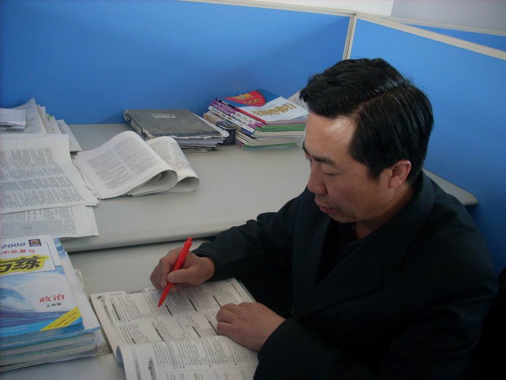 他,是我的班主任老师--黎学忠 ,别看他是个男老师,而且已经是40多岁了,但是,他干起工作来可是一丝不苟,兢兢业业。而且对我们的关怀也无微不致,不论我们班那位同学有困难,他都尽力帮助解决,而且还帮助家庭经济困难的学生交学费,这使得我们班同学都非常的尊敬他。看,已经下班了,老师还在给我们批改作业呢!
