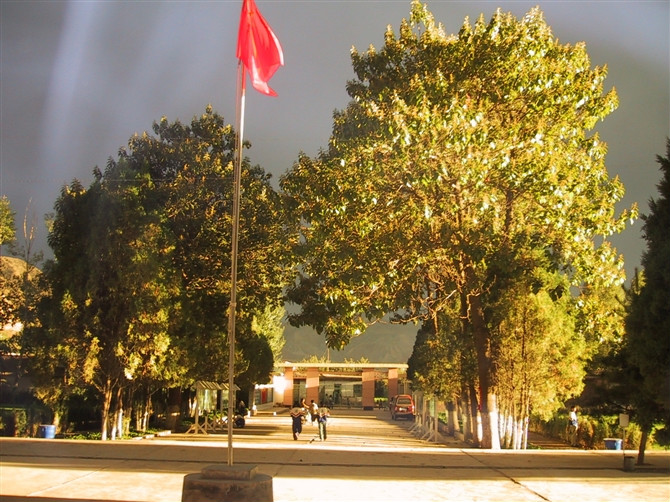 每当春天来临时,本来干枯的草坪已不复存在,取而代之的是绿油油的草坪。四周围绕着绿荫荫的树木,同学们可以在周围尽情地玩耍,读书。给同学们留下了深刻的印象。