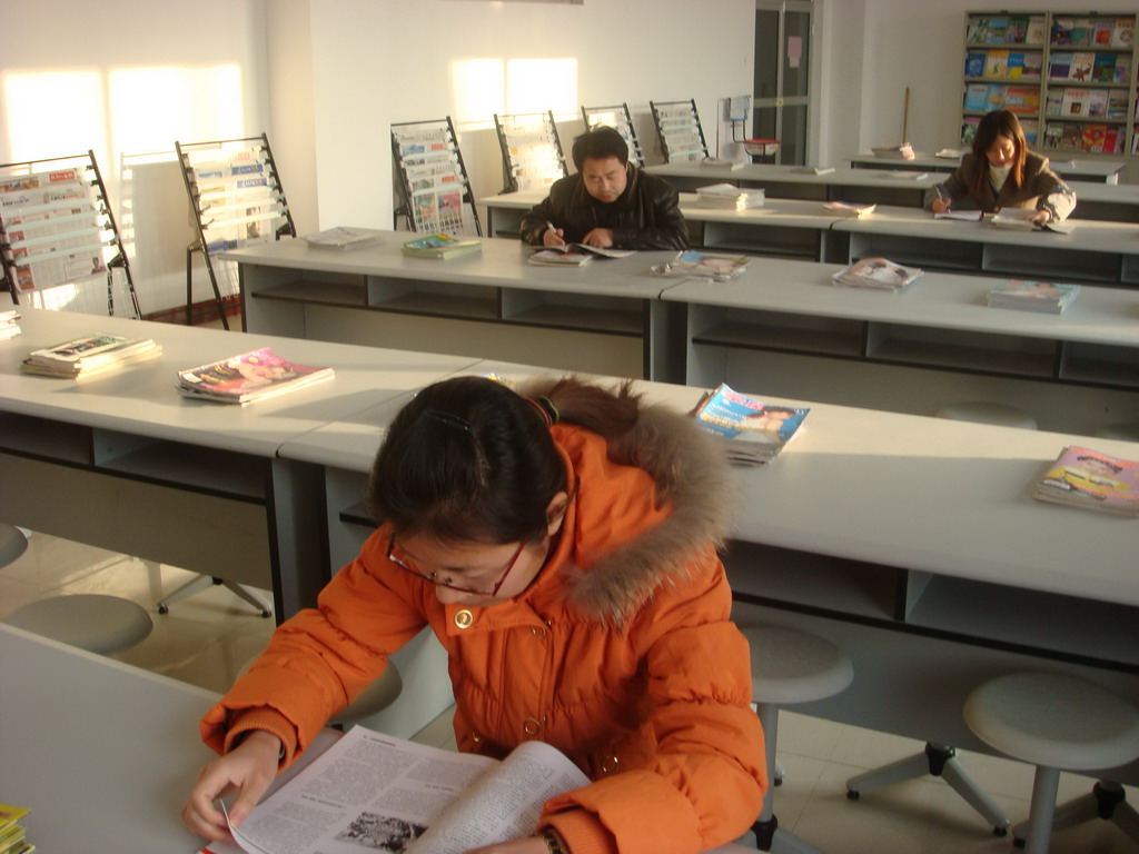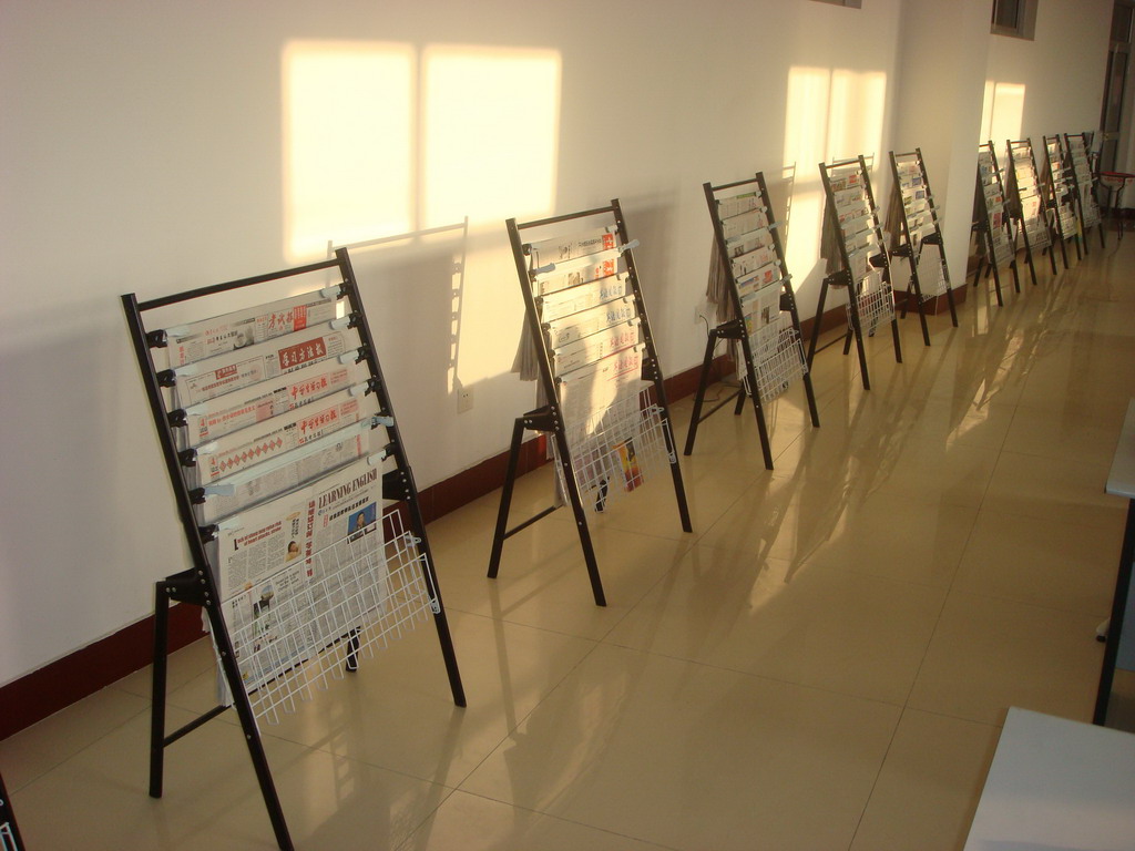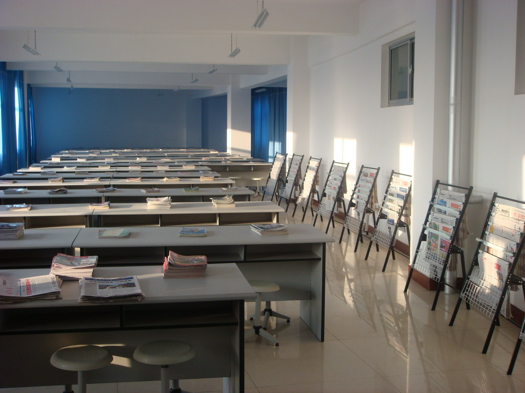 学校不仅满足了广大师生的阅读需求,而且为了能够使阅读者能很快找到自己所需要的报刊或杂志,学校专门为师生们购置了报架和书桌,管理员将各类杂志报刊分门别类的摆放在桌子和报架上,而且每天都要细心的整理、清洁一遍,这样我们每天来都能很快的找到自己所需的刊物了。