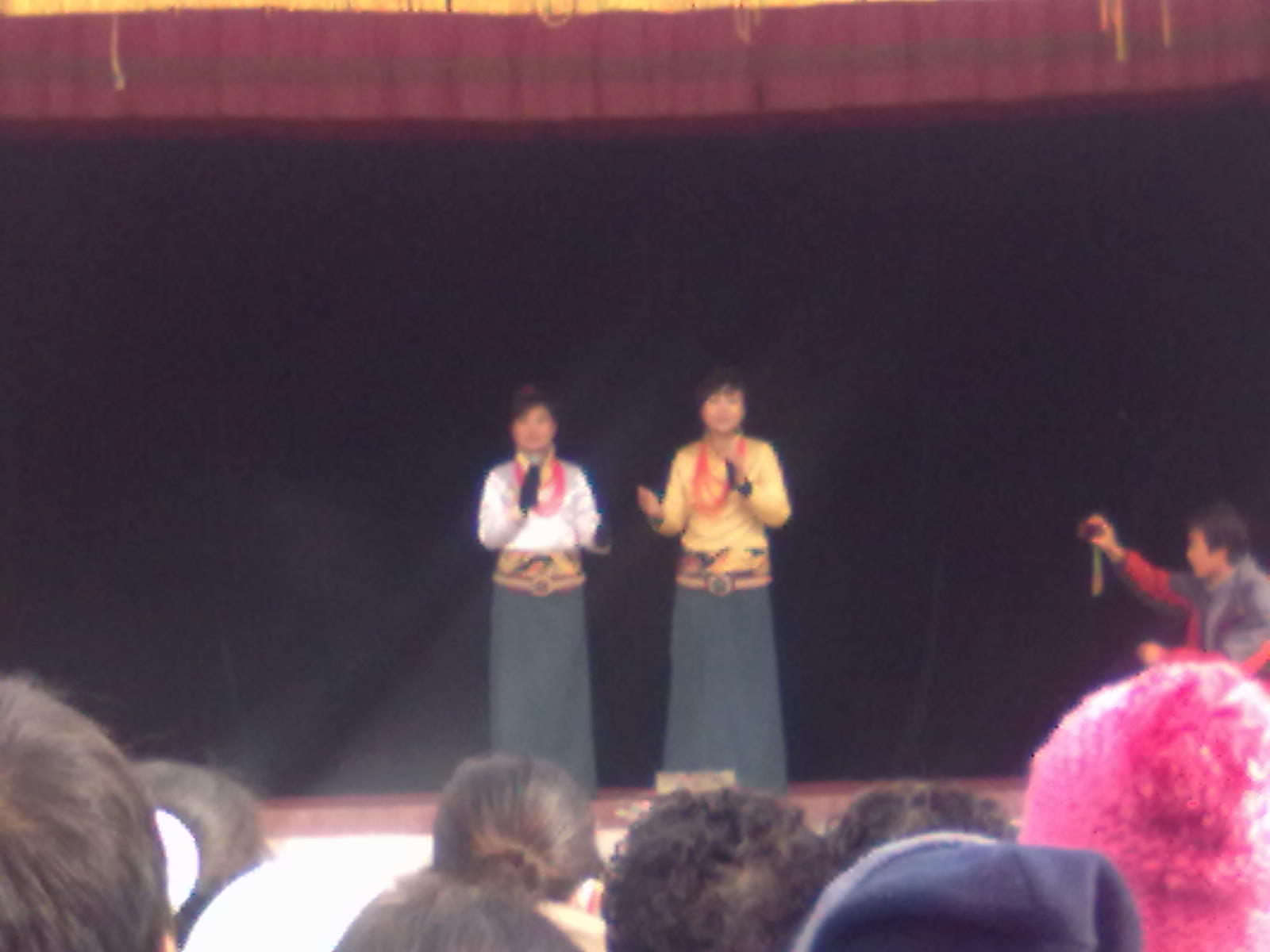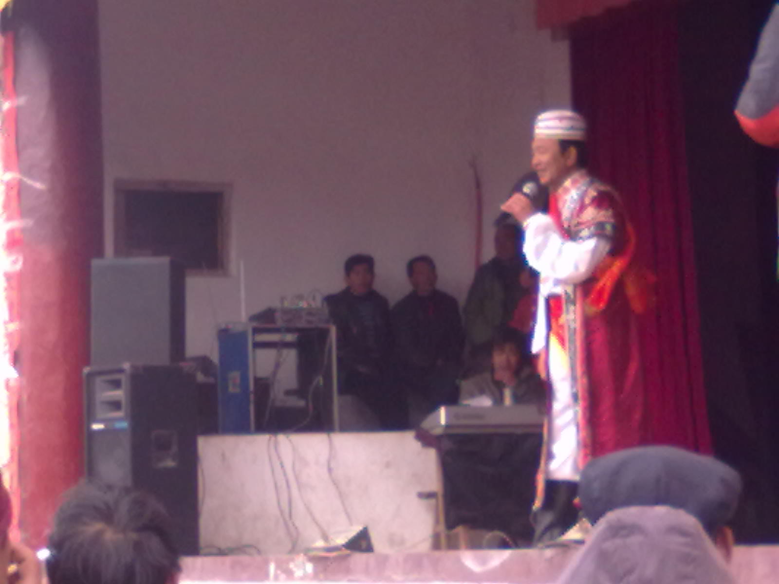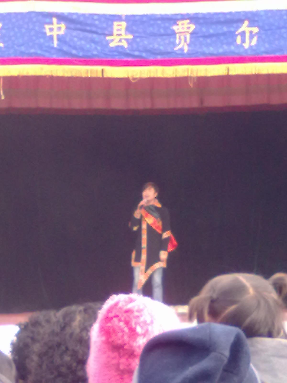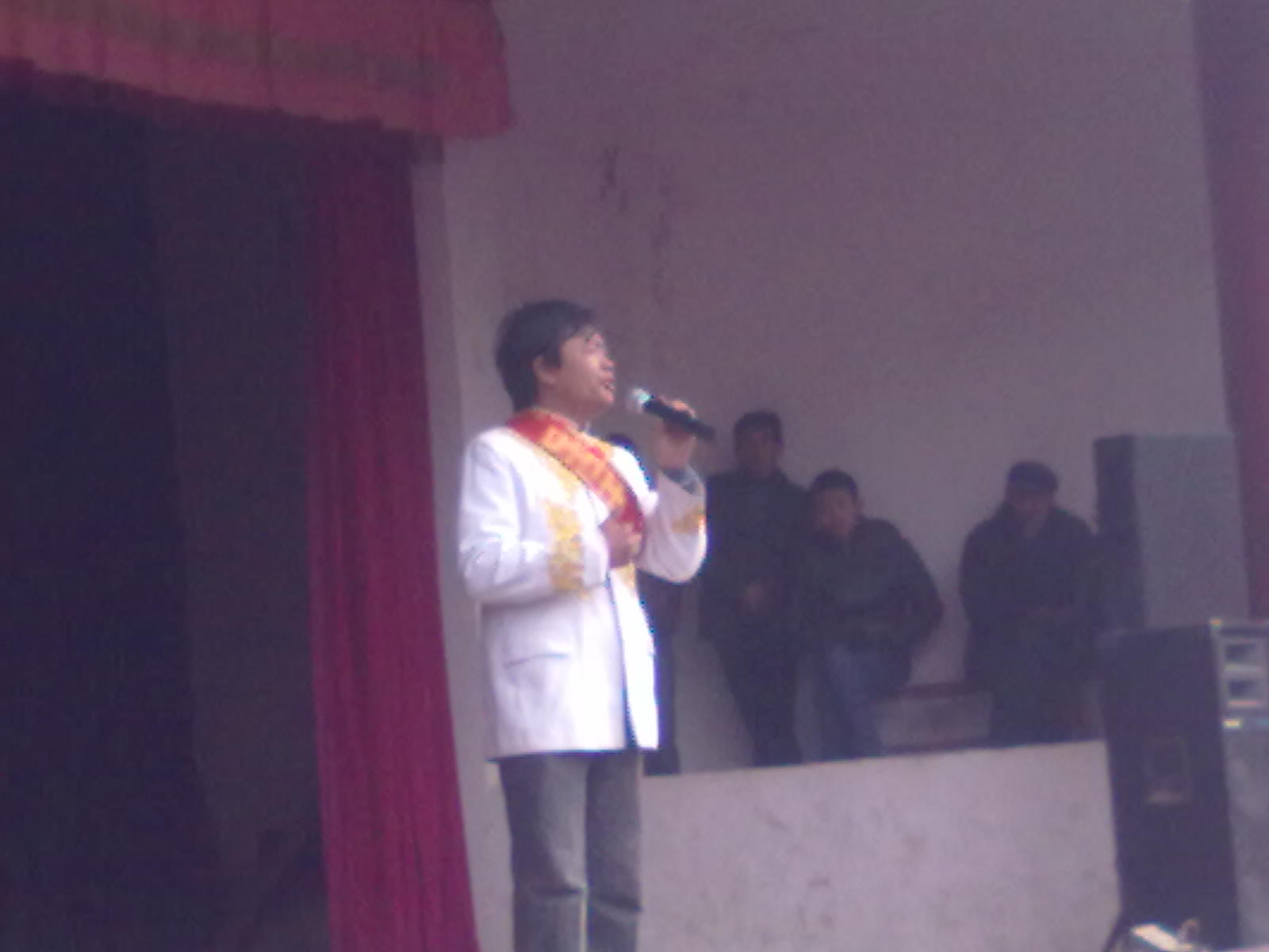 表演开始了,先由帅气而又大方的的报幕员给大家拜了年。在大家的掌声与拥簇中出场了第一组表演——是俩女花儿歌手,她们同样拜过年,就放声高歌了。和着那悠扬动听的歌声,掌声和呐喊声汇成一片,真可谓是人声鼎沸。第二个节目由四个女演员献上了优美的舞蹈。那婀娜的舞姿同样换来了震耳欲聋的掌声和呐喊声。节目在人们的掌声和呐喊声中一个接一个,一组表演完了又换上来另一组,一阵掌声刚歇又掀起一阵呐喊声……这些表演都很不错,可有一个节目令全村人叹服不得吧不说一说。这是一个男花儿歌手,他上场的时候表演已经接近尾声,大家的激情也已锐减,掌声和呐喊声也快要绝迹,再加上天公不作美——变得很冷很冷。因此,有些人也已准备打退堂鼓。但这些并没有影响他的演出。哎!真不错。一鸣惊人。他唱的没的说,最重要的还要算他的随机应变。他自编自唱,借歌说人。这让很多人恢复了兴趣。掌声再次雷鸣,呐喊声再次震耳,人群再次激情高涨,戏场也再次沸腾……