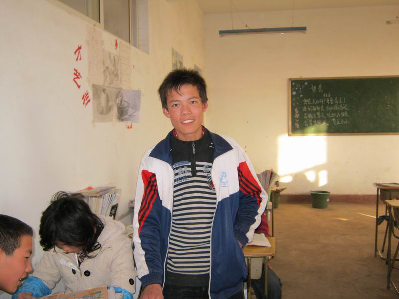 他留着长毛寸,黑黑的皮肤,但他却有"苗条"的身材,个头也很高,这可源于一个东西——篮球。他不但是个篮球迷,还是一个篮球高手,在球场上总是可以看到他跳动的身影。在班里他同样也不煞风景,同学们的眼光总在他的身上停留。