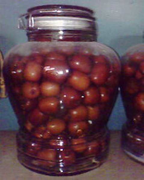知道这是什么吗?家乡人为了能够长期保存鲜活的大枣,他们想了一个好办法,把刚摘下来的大枣配着酒和白砂糖一起浸泡后盛在一个密闭的容器里,这样过很长一段霎时间之后再拿出来吃。酒的醇香加之嫩枣的芳香,让你在不知不觉中醉倒,而且枣的营养和着酒的药效让你在香甜可口中保健。