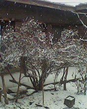 这是我家院子里的一棵牡丹。经过了一个秋天,它的树叶已经落了剩下光秃秃的枝干了,平时看起来显得有一点丑陋。可是下雪之后它就与以前截然不同了,它的枝条上落满了雪,银装素裹,变得另有一番风景,在雪中是多么美丽呀,为我家添加了不少风景。