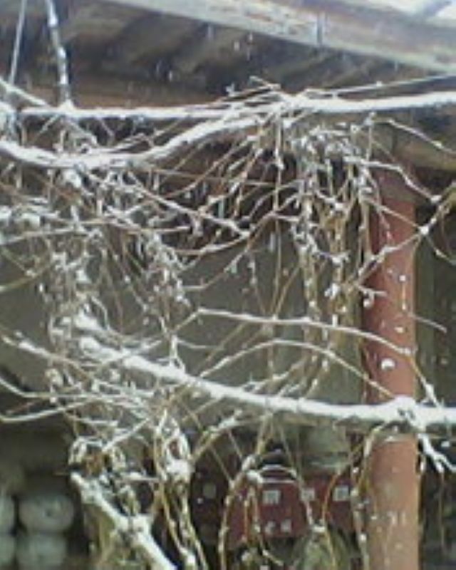 这是我大妈家的一种花,偶尔我在大妈家玩的时候瞧见的,听大妈说这种花只有让它爬到架上才会活。那天下雪,我正去玩时,我见到这一景色,觉得太美丽了,那本身就掉住的花,被雪一装饰,好像雪白的弧线,漂亮极了!