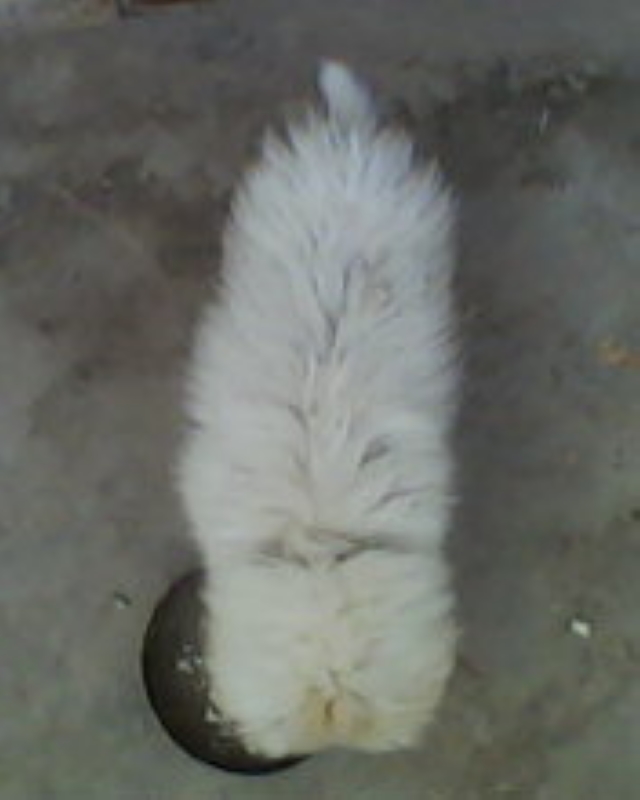 它那样的体力也需要足够的睡眠,有时它玩一会儿,就会爬在地上慢慢的睡着,它那睡着的样子很特别,头弯曲到它的肚子边 ,而它的毛色是纯白的,这样卷曲起来就像一个白绒绒的小雪球!