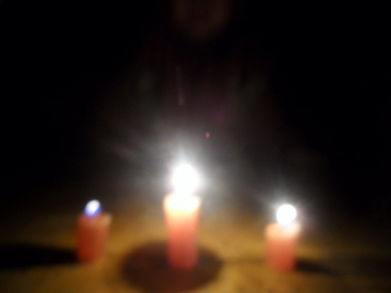 突然,我心里一惊,屋里的灯灭了。一片漆黑。哦,停电了。正在厨房做饭的妈妈喊着:"儿子快找蜡烛点上。"我一边应和着,一边摸索着找蜡和火柴,蜡烛点上了,漆黑的屋亮了许多。借着那跳动着的昏黄的烛光,我和妈妈一起吃晚饭。静静的房间,包围自己的是昏黄的烛光,仿佛走进了另一个世界:一个部落的人们,围着篝火,在一起共进晚餐,周围是茂密的森林。皎洁的月光刺透密密的枝叶,斑斑点点的撒在他们的身上,包裹着他们的是温馨,是欢笑……