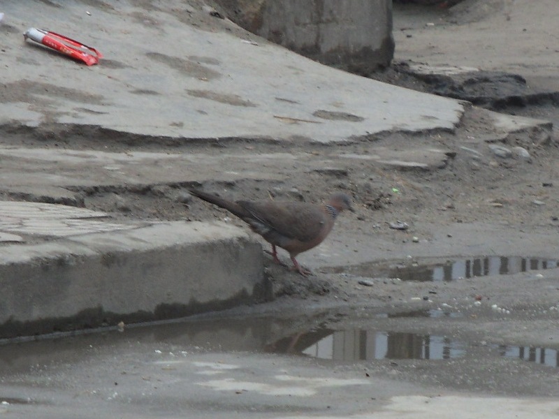再看那只斑鸠,在水边蹦来蹦去,可爱极了,那模样,像极了无忧无虑的孩童.仔细一看,它好像在看水中的倒影,可见它还是一个爱美的小姑娘呢.