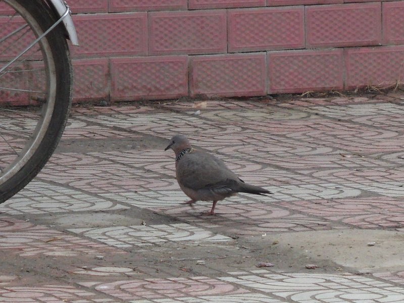 春天到了,校园里到处充满着春天的气息.不信请看,那只在自行车旁边的斑鸠,全身都是灰色的,它的模样确实不讨人喜欢,但是,它蹦蹦跳跳的样子给沉寂的校园增添了几分乐趣.
