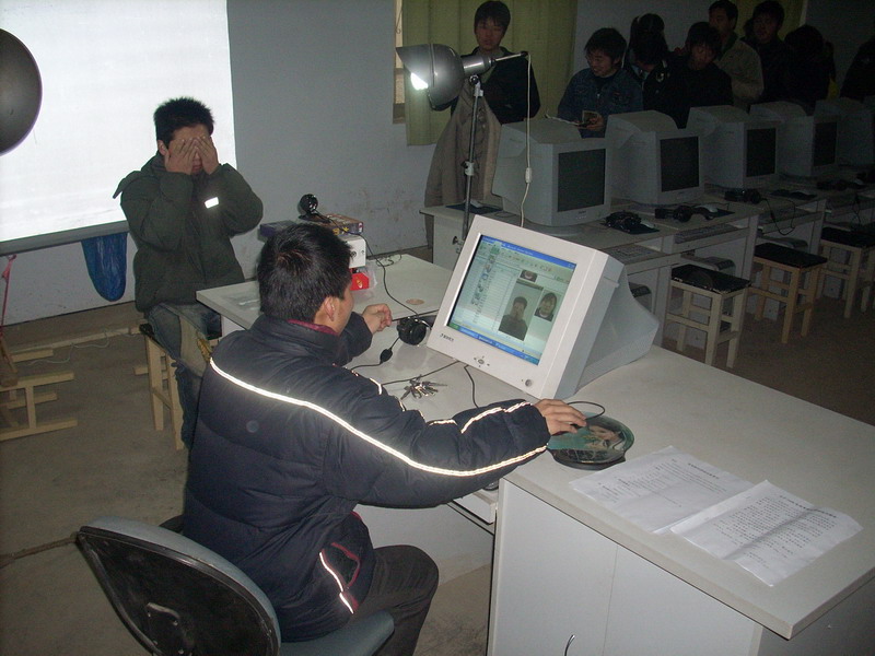 今年的高考报名工作是在网上进行的,要求学生在网上自己填写相关信息,同时照像工作依然是通过网络进行,12月15日,我们学校进行高考的采像工作,在学校的微机室进行。
