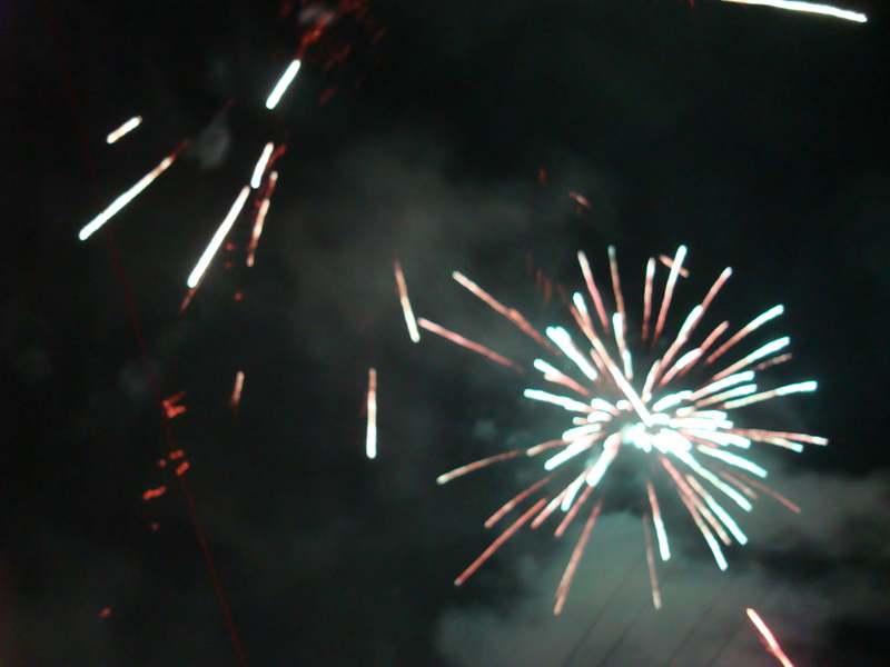 我先把坦克的引线点燃,然后往后退了一步,只见坦克边发射边前进,好像胜利在望的样子。我再点燃飞机,只见飞机一飞冲天,飞到了房顶上才不飞了。我抬头一看,发现飞机后面冒出七种颜色,好看极了!我又点燃蜜蜂,只见蜜蜂边转边飞边洒花粉,也很好看。响完蜜蜂后又点燃了陀螺,它边在地上转,边冒着五颜六色的烟花,也是非常好看的。