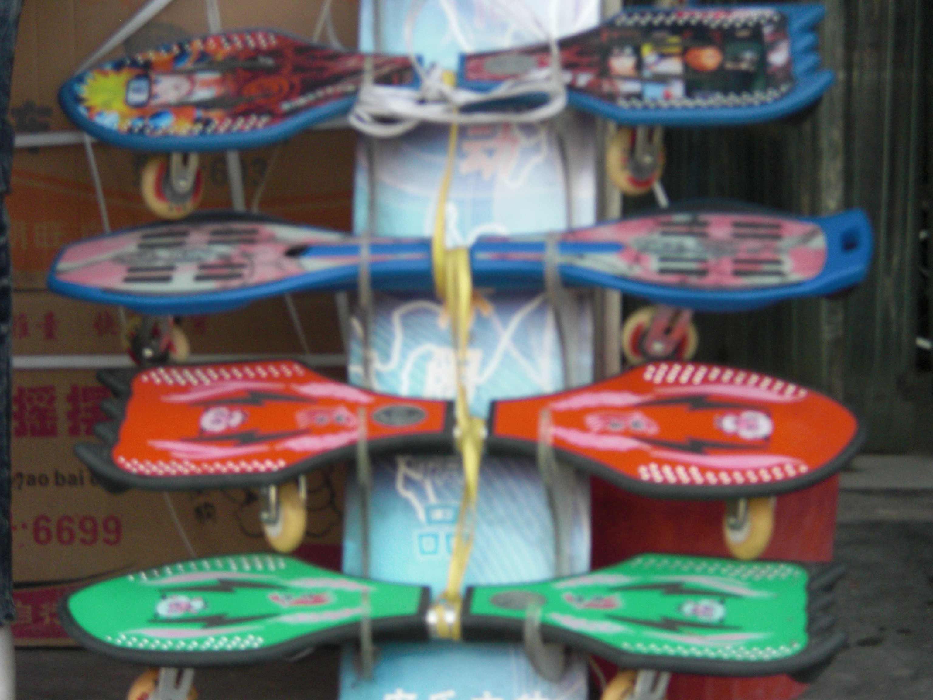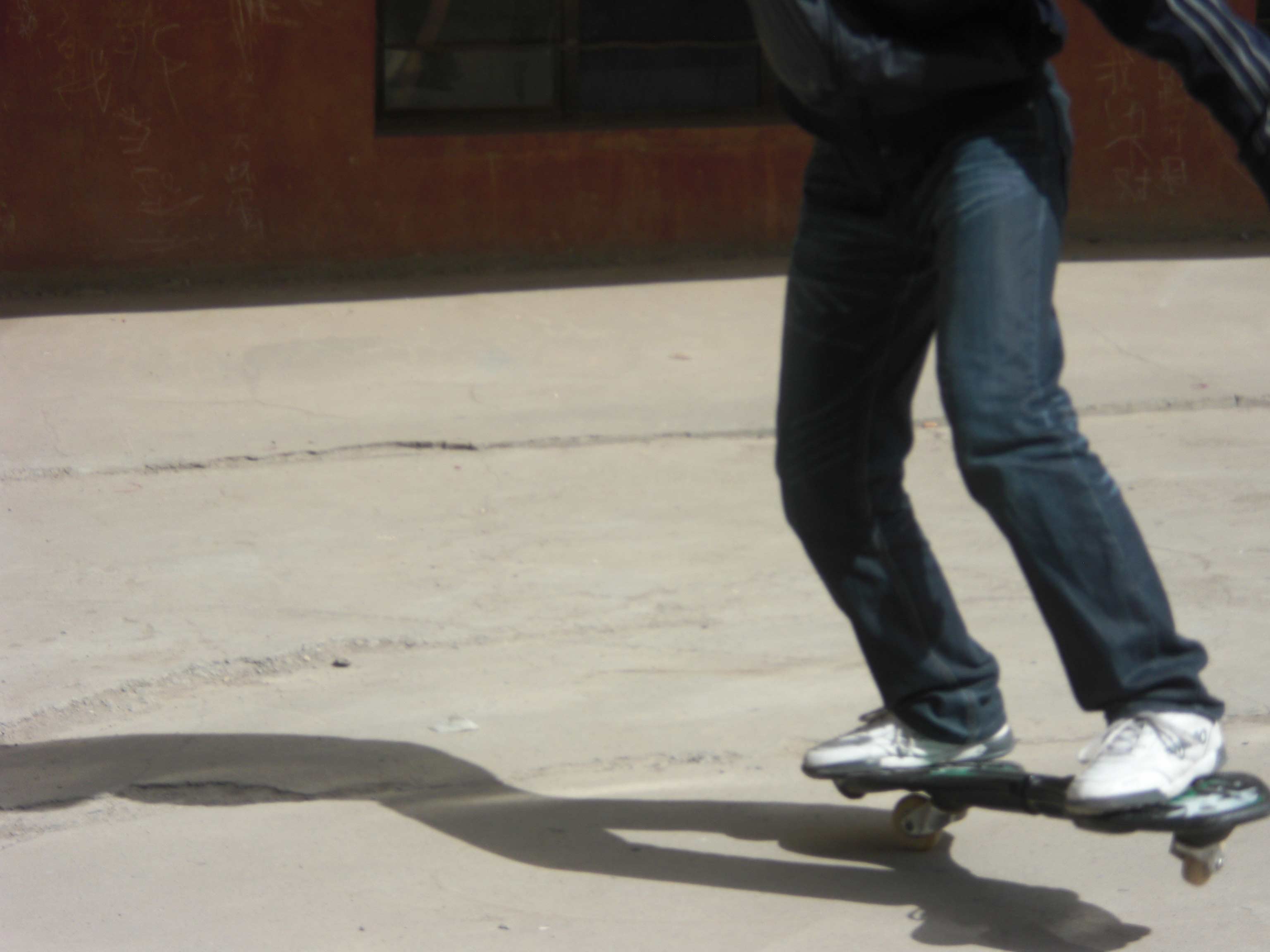 要加速了,主人把我的另一半身体也滑动起来。这时,我就会尽情的为主人服务,给主人带来无尽的欢乐。特别是在下坡时,利用坡度将我带动起来,这时,主人就可以尽情的施展他的才能了,什么拐弯啦,漂移啦,抬板啦等。到了晚上,轮子还带着光彩。