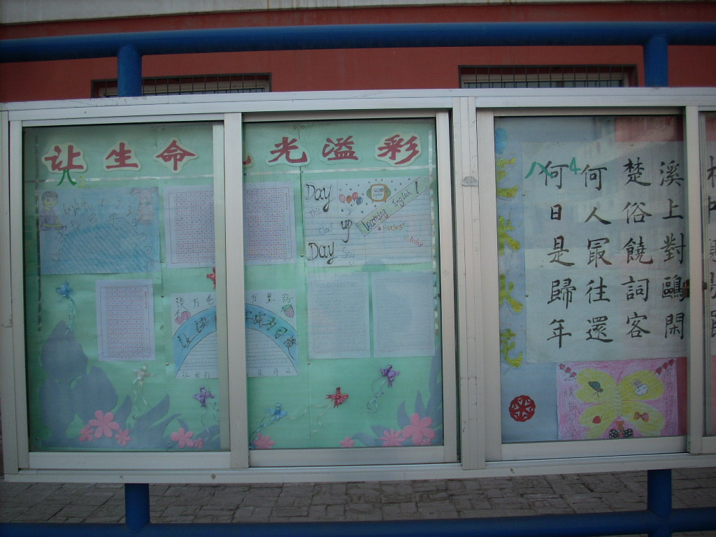 结合着我校的"让读书、写规范字成为习惯"活动,在学校团支部的领导下,学校开展了校园"橱窗才艺展示"活动。 在宿舍楼前,有一排橱窗栏,学校团支部把橱窗分给了各个班级,要求在一个星期之内,把橱窗布置好。