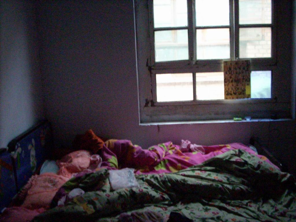 这是他的房间,看到那个被窝了吗?那就是陪他多年的被窝,它是他爷爷结婚时用的被子,听他说晚上盖上它非常温暖.