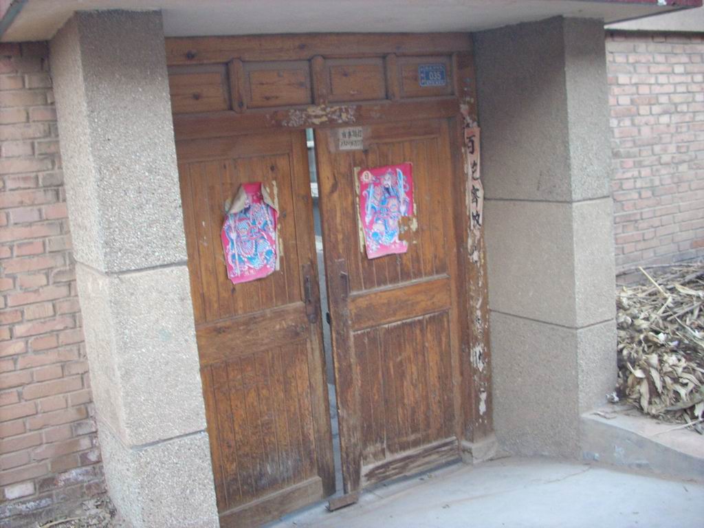 这是他家的大门,它是他爷爷以前当木匠时制作的.虽然时间已长,但它任然坚固任能防盗.