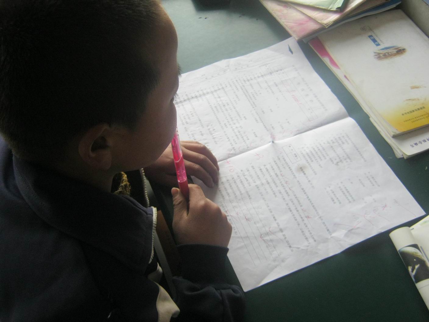 前天老师说:"明天我们要考试,请大家做好准备。"我听了愁眉不展的,生怕考试时再粗心。第二天考试前十分钟,我把书复习了一遍,考试开始了,教室里很安静,只听见"沙沙沙"的答题声。