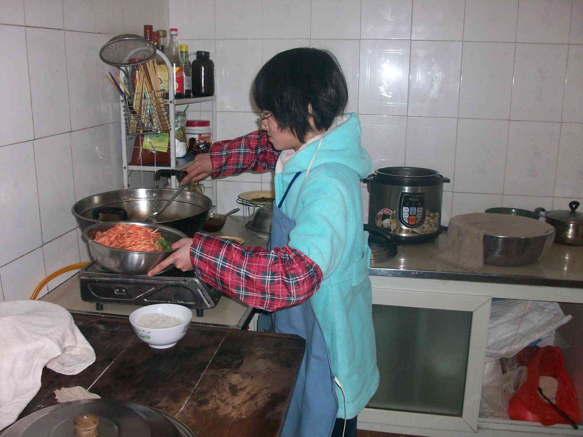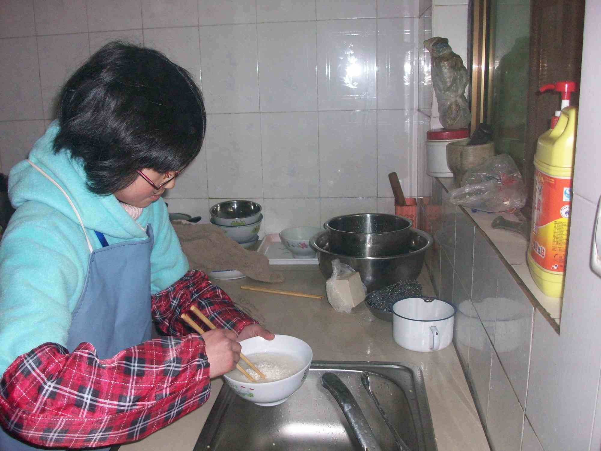 我决定了做米饭,首先,我先淘米,我大约放了两勺米,把坏米都挑了出来,淘完后,把米放进锅后,我思量着,水烧开后有的会蒸发,于是我放了两大碗水,我觉得还不够,又添了一碗水,盖上锅盖。