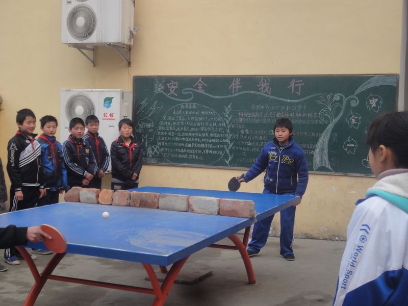 下午课外活动时,我们班的同学正愁没事干,我们的班主任庞老师来了,她告诉我们说要组织我们进行体育活动.大家一听高兴地跳了起来.于是我们在老师的组织下来到了乒乓球台边,有顺序地开始打乒乓球.