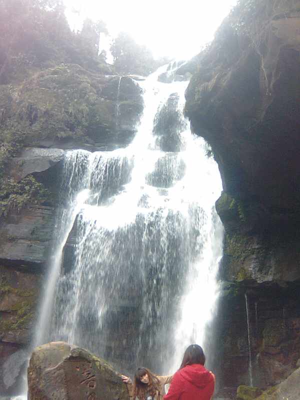 最吸引我的当然还是这壮观的瀑布,在我所见的这种场景,简直可以用李白的"飞流直下三千尺"来形容。听那水声,多有气势啊!远远望去好似一巨大的珍珠帘,每当游客经过这儿都会止住脚步留下美好的照片。我们几个也忍不住跑过去,嬉笑、打闹,水声、虫鸣鸟叫、游人的欢笑声,让整座山谷非常热闹!