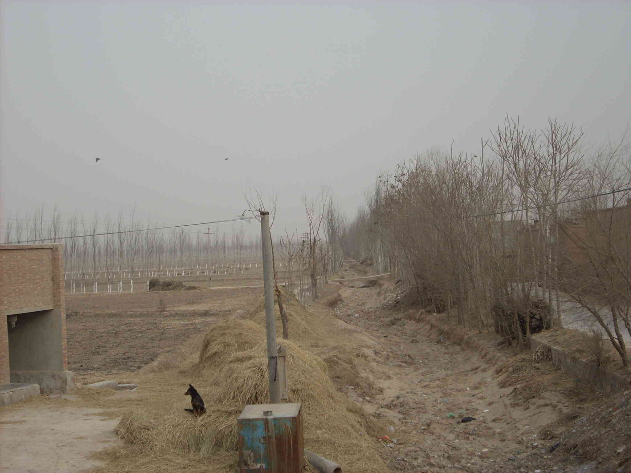 这是冬日旷野中的又一道风景,已经停了水的水渠边堆满了稻草和干柴,小狗儿在中午也喜欢来这晒晒太阳,散散步,多谐意啊!