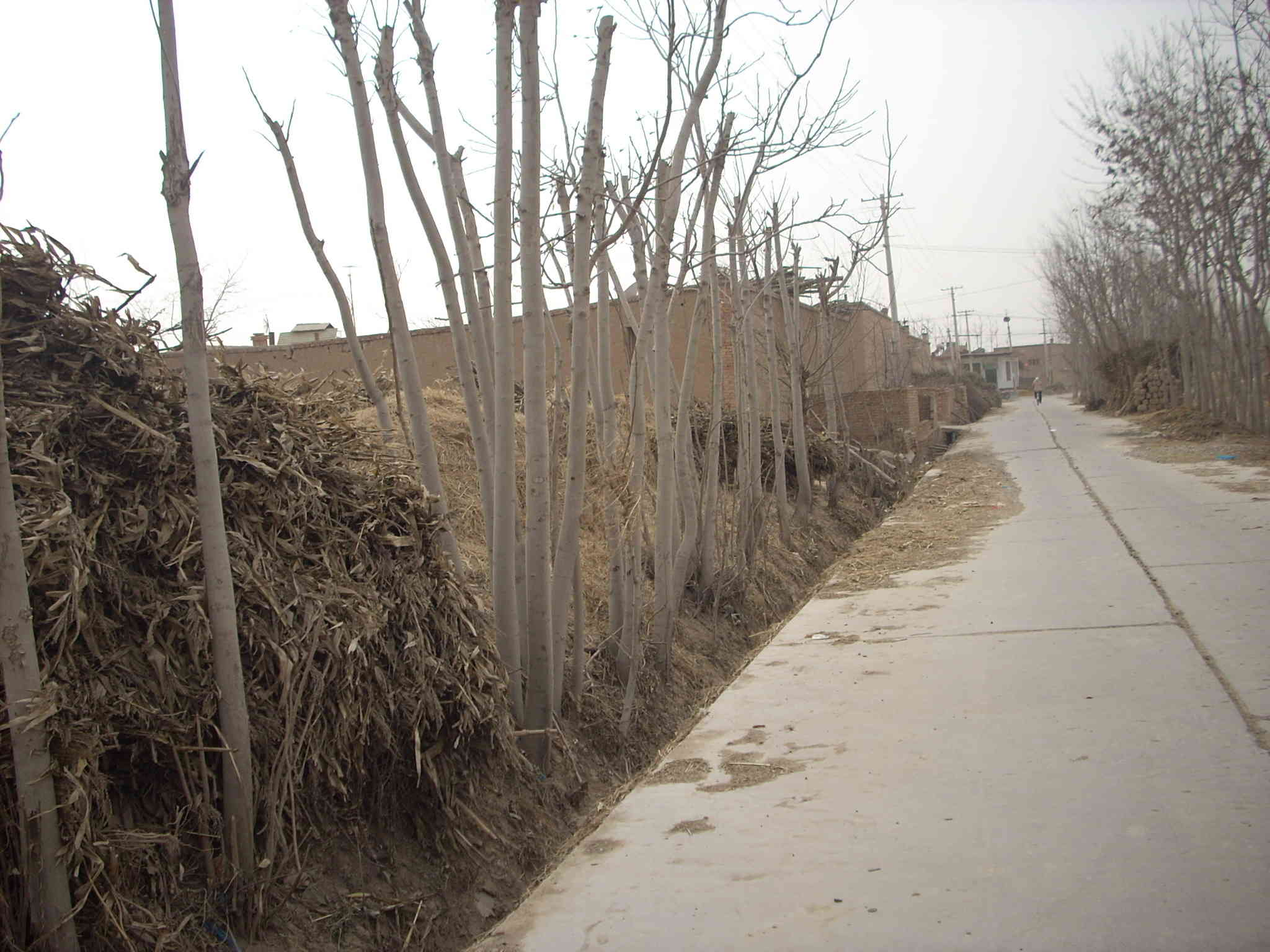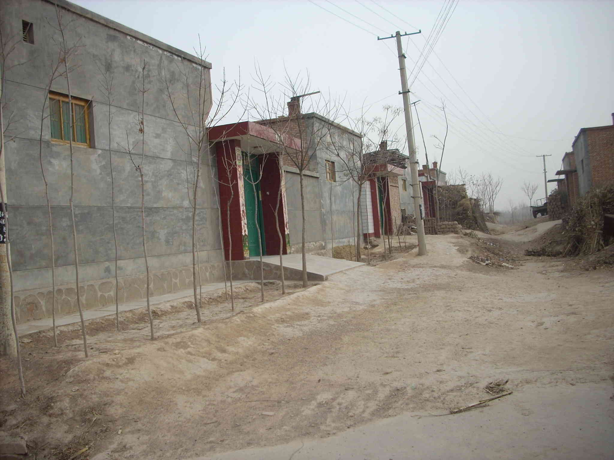 尽管冬天很冷,但是人们总是很勤快的把自己家的院子和门前的路扫的特别干净。在这个严冬时节,一座座大大的房子,一棵棵还未长成的小树,是那么的安静,那么忠诚的守护着他们的主人。