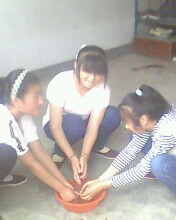 盛放生活用具的箱子都摆放得那么整齐,颇有军事化标准!在我观察之余,同学们都在洗刷,但她们盛水用的盆子却引起了我的好奇——为什么那么小哪?或许这便是生活在我们这里的学生该做的,那就是——节约用水。