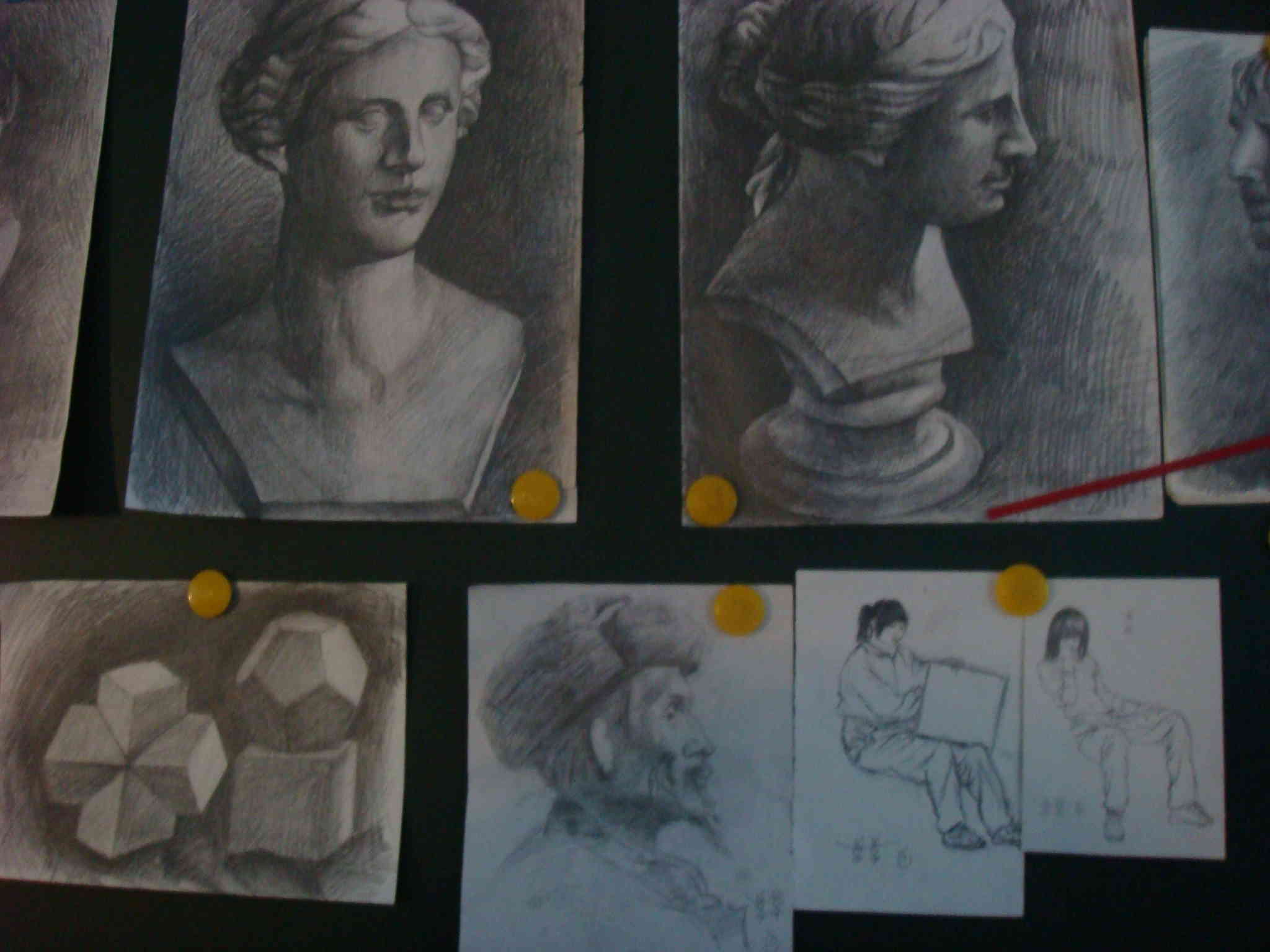 今天是星期天,学校画室里的学生们带着自己的画板来到学校又开始练习了。学校的画室并不是很大,但它为学生给了一个展现自我的空间。当太阳还在成睡时他们以经来到这里,现在太阳已经升起来了。现在他们有的注视着模型,仿佛在构思着一个惊人的作品。有的正在认真画着。他们希望用自己的笔描绘自己的明天。