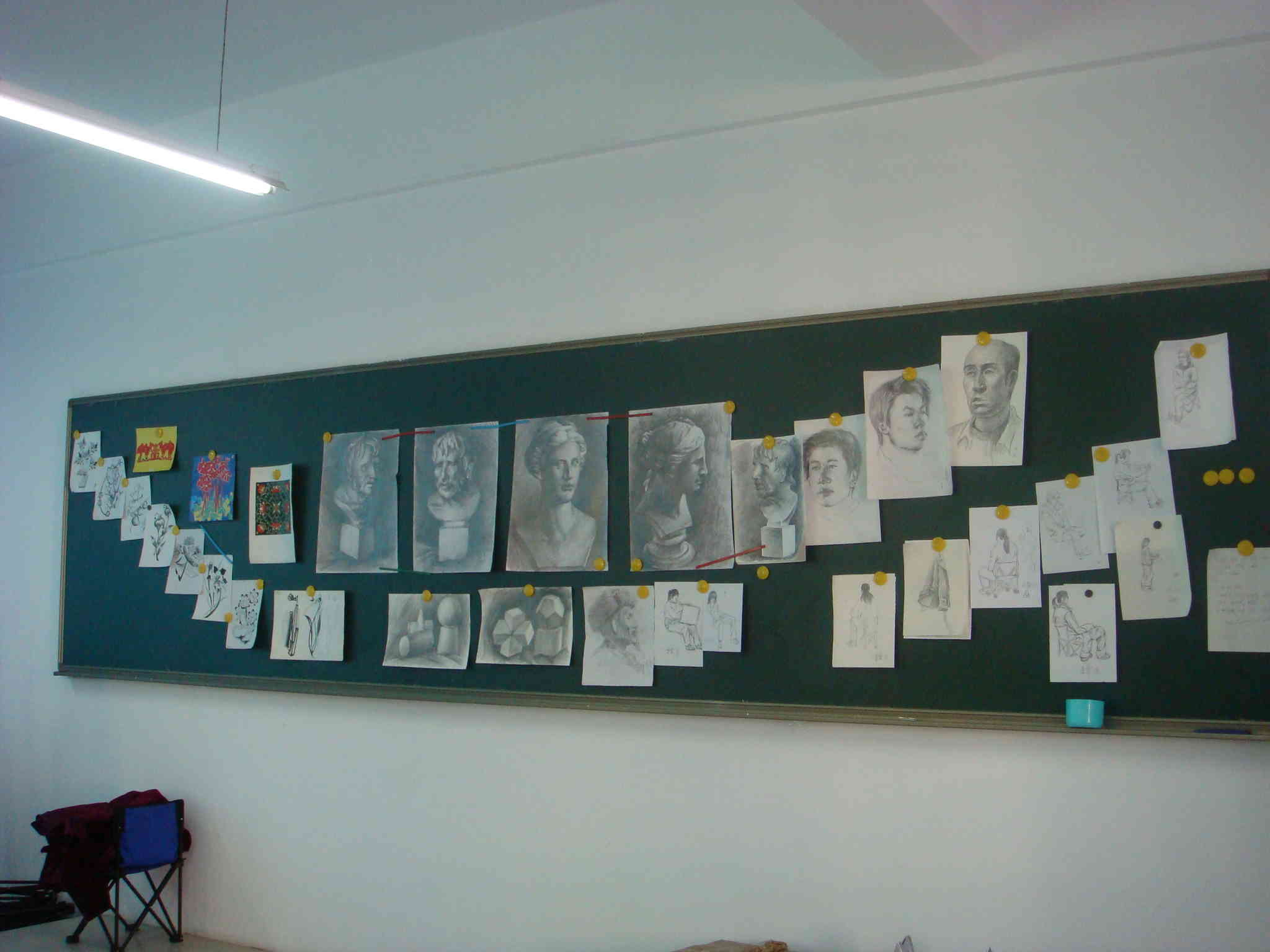 又是一个星期天,同学们又来到了画室。当他们刚进入画室时。老师已经把好的画排成一个\'v \'字挂在黑板上了。同学满意的笑了。因为这是他们能力的见证。