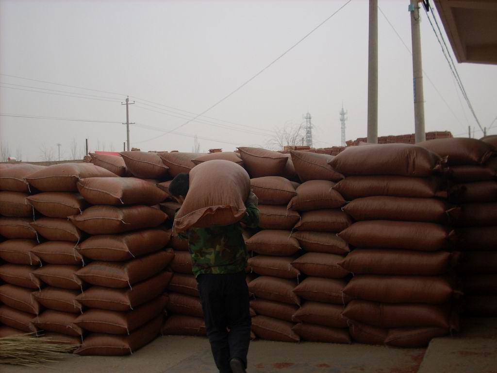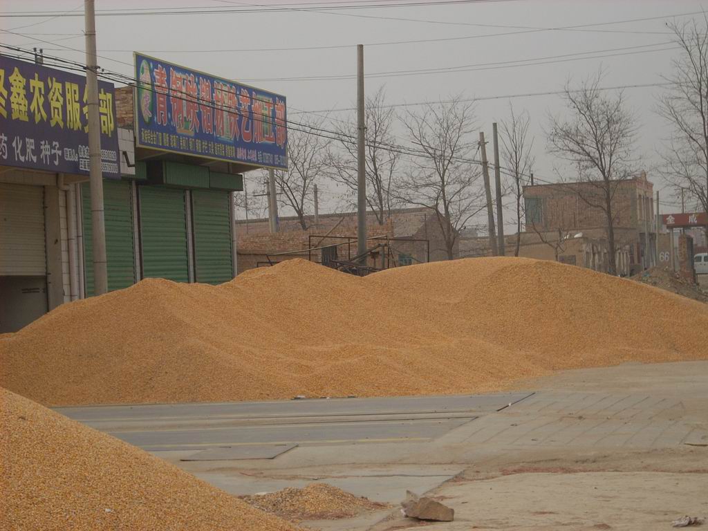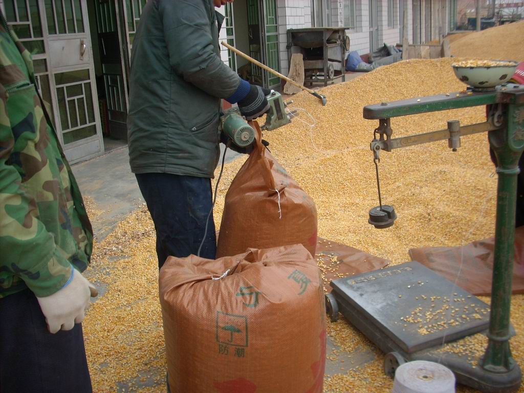 我们把玉米已经卖了,买玉米的人们又开始过后的工作,他们把装好的玉米堆成大堆,等待着货运公司来把玉米运走,之后就可以等着数钱了!