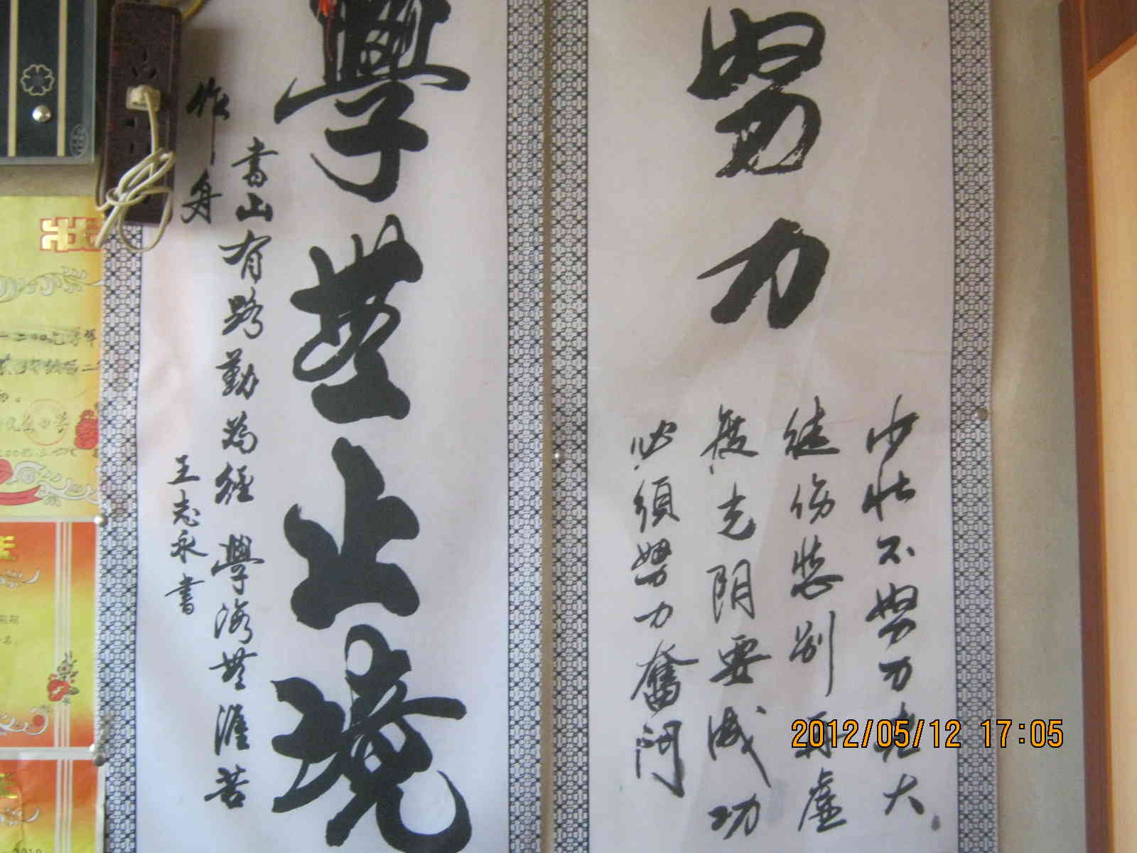 天堂的门面就是一幅字帖,上面写着:学无止境和努力两个大字,看上去是那么的挺拔、坚韧。他仿佛是我的忠实朋友,时时提醒着我努力学习,每当我懒散、堕落时,它总站在墙的那头扯高气扬的说:张明,难道忘记你对自己的承诺了吗?