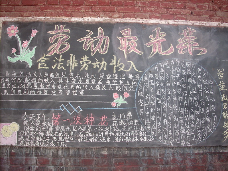 从上学开始,教室里总有一方黑板。如果你用快镜头来看,那么,一定是黑板报写了又檫,擦了又写。每个班级提出的黑板报都各有其特色。我们班的板报主题是"让环保飞"。板报内容告诉我们关于保护环境的相关法律法规,告诉我们绿色也是生命。并配有形象的漫画加以装饰。