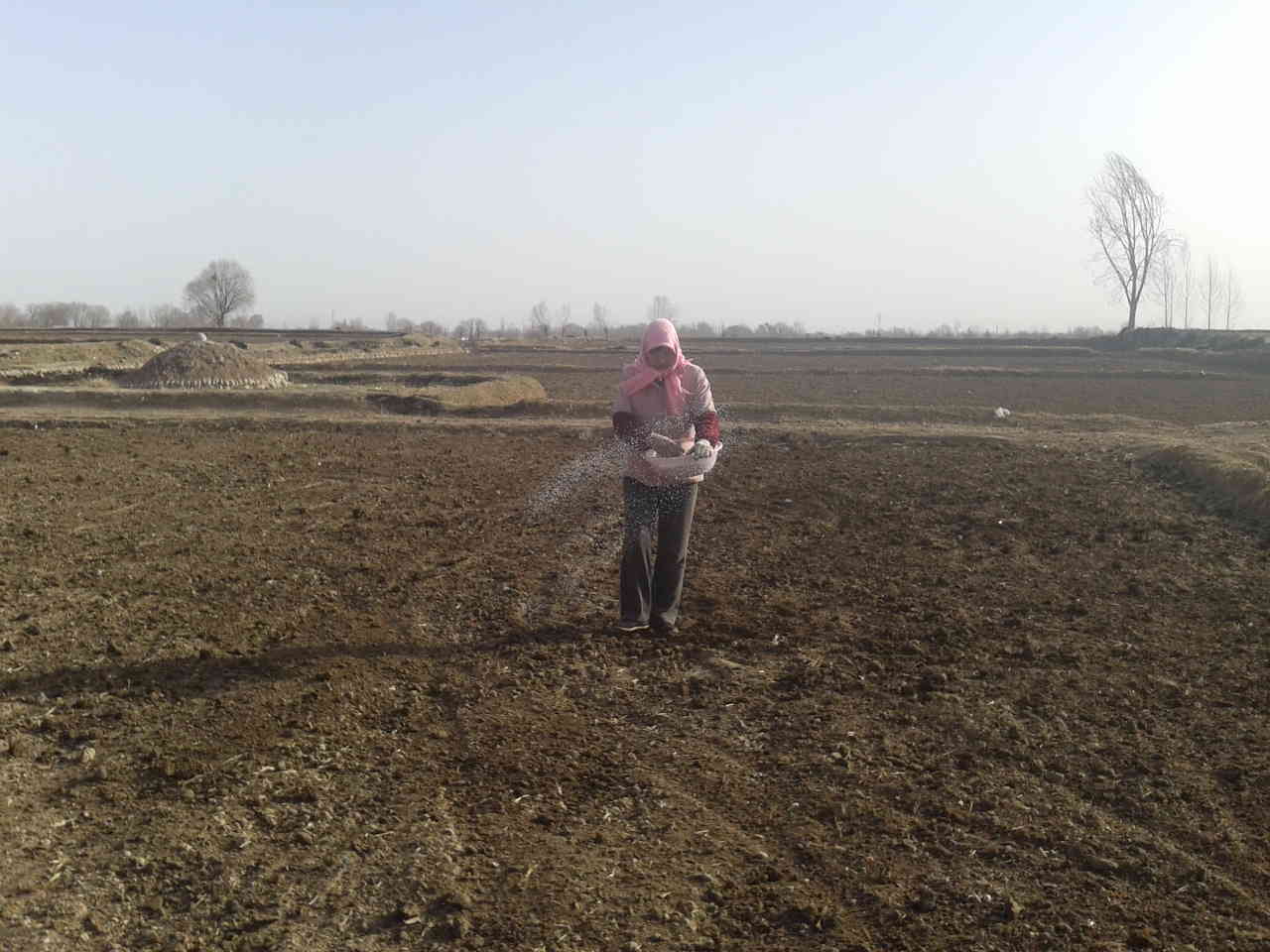 来到地里首先要做的就是将前几天拉的粪先扬开。于是我们就拿起铁锹开始干了,看起来扬粪也没什么难的,就拿铁锹一铲一扬就完了。可事实却不是那样,干了不到半小时我的胳膊就开始酸胀了,好不容易将粪扬完,接下来的一步就是将化肥撒在地里,妈妈拿着盆子从化肥袋里倒了一盆,然后走到地中间,边走边撒,这可比扬粪轻松多了,于是大家都开始干了,就这样一晌午的功夫就都干完了。