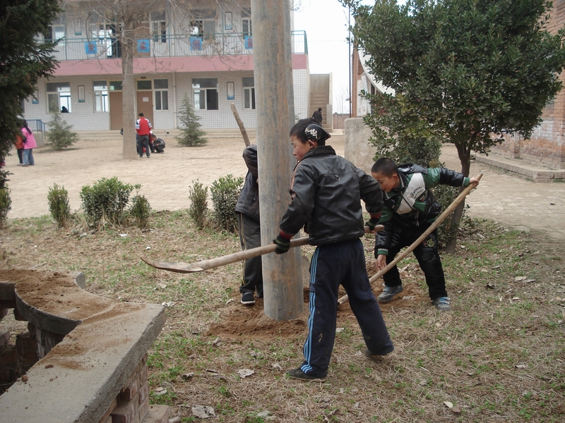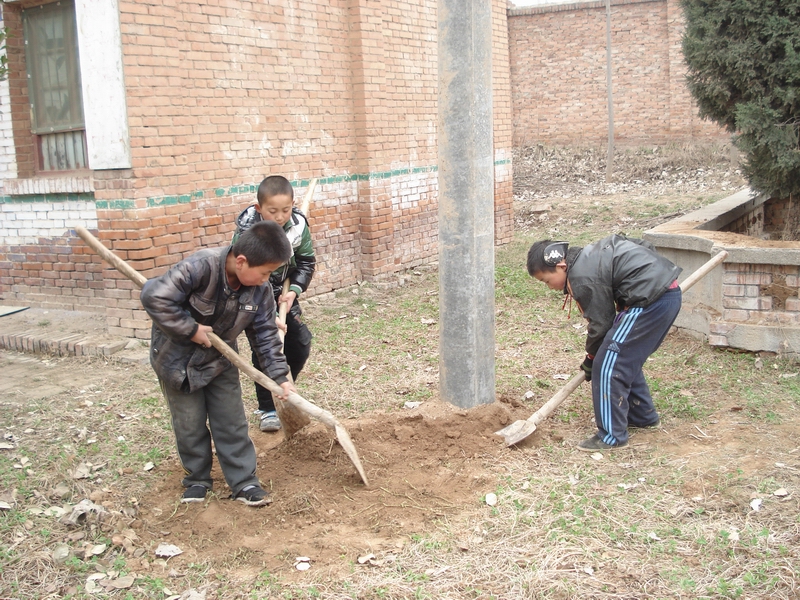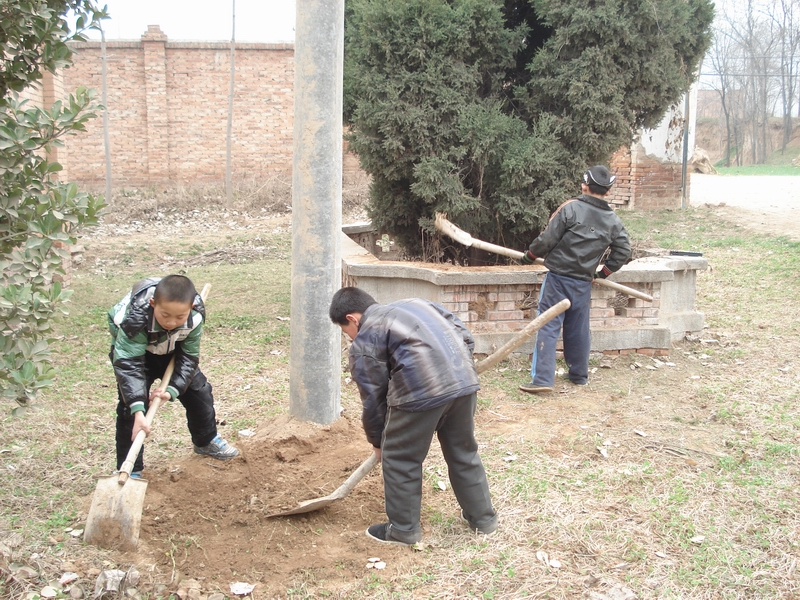 这时,史老师过来了,他忙取来照相机给我们拍照,并且指导我们轻轻把草根上面的土再铲到一边去。我们三个人小心翼翼地用锨取着土,唯恐伤害到三叶草。没想到,这样干反而更累人,我们三个一时弄得是满头大汗。