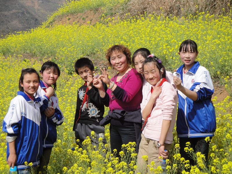 当我们走到半山-----一片油菜花地的时候,我们还和老师一起留下了最好的记忆。