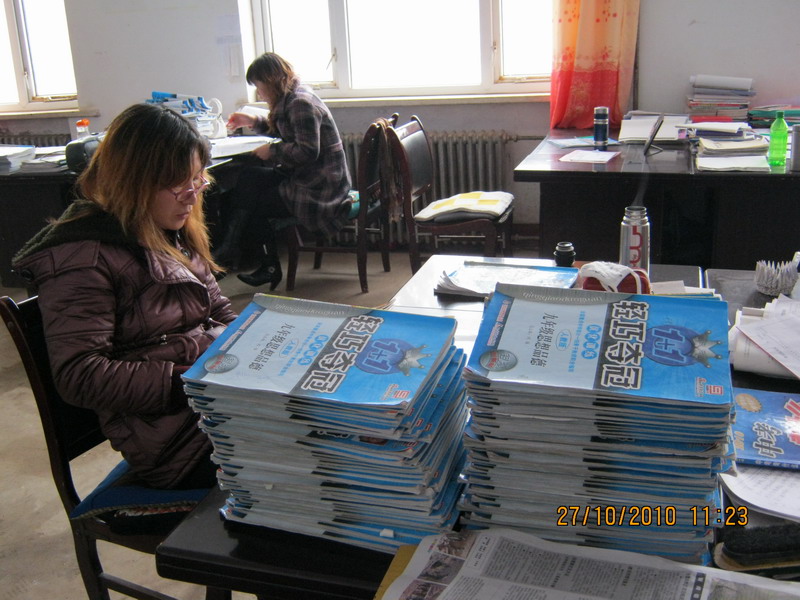 高而瘦的身材,一张脸上除了应有的五官外,剩下的地方就是像撒哈拉沙漠,坑坑洼洼的。她上课总是左手拿着教科书,右手举着三角板,快速走进教室,然后严肃地喊着"上课"。