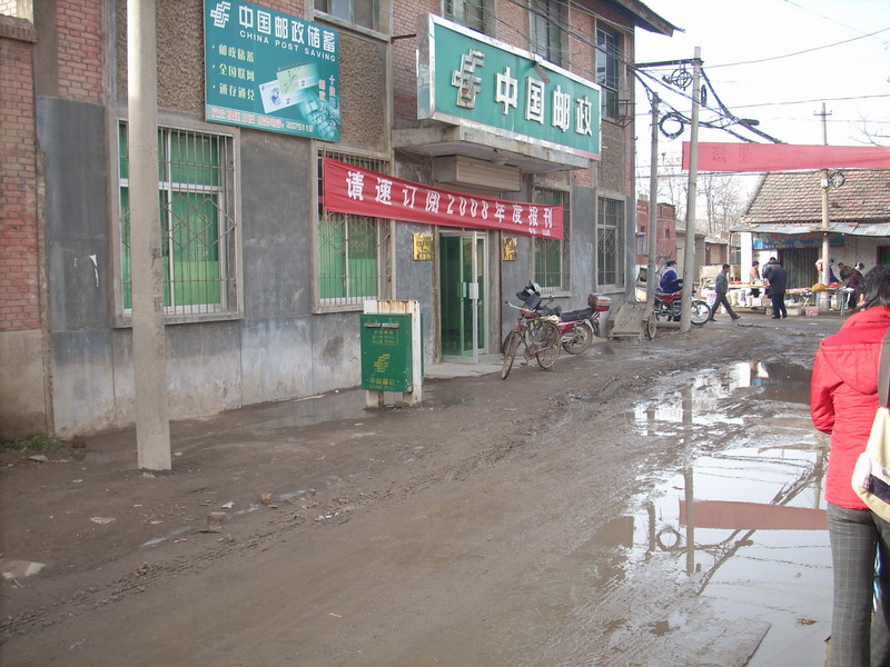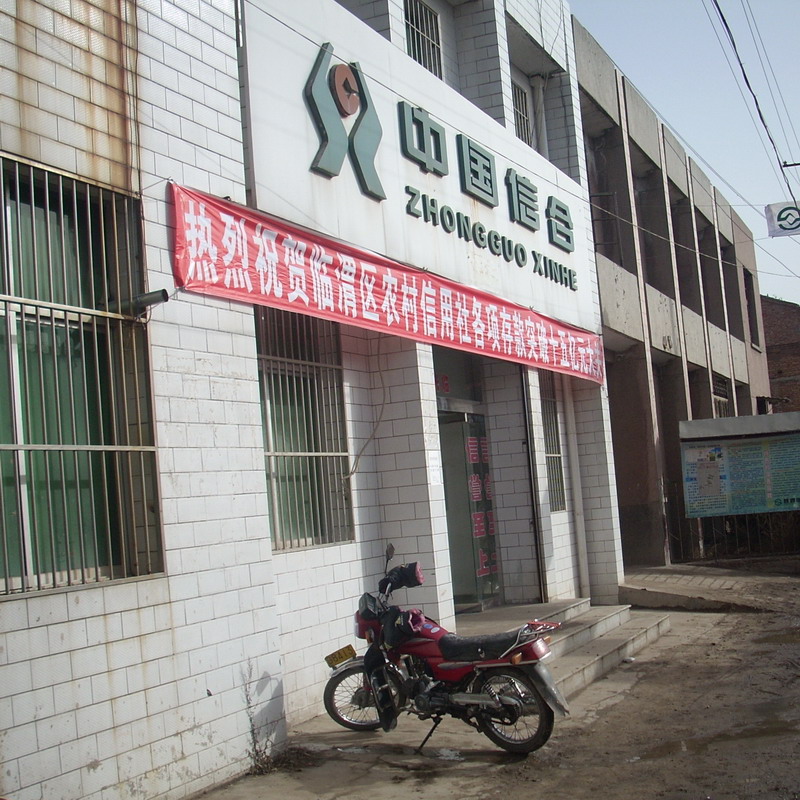 整个西塬是没有银行的,只有信用社,所以平时学生办银行卡都是到50里外的县城里去,阳郭镇的信用社跟邮局在一条街上,相距只有一百多米,这里只是办理存取款业务,一般来办这里的人比较少,农村教师的工资是由信用社代理的,所以,经常有老师来这里存取工资.这可就是我们镇的唯一银行了.