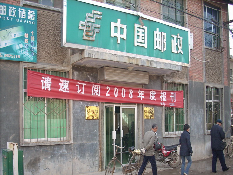 西塬上共有7个乡镇,面积广阔,人口众多.但邮局只有两个,相距较远,一个就在阳郭镇上,这个邮局覆盖4个乡镇,大王,三关庙,阳郭,员曲.这些乡镇的人们一般都是趁赶集的时候来这里邮寄东西或办理其它业务.对他们来说很不方便.我们学生一般邮寄信件或接收资助款有的就是来这里办的.
