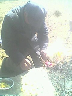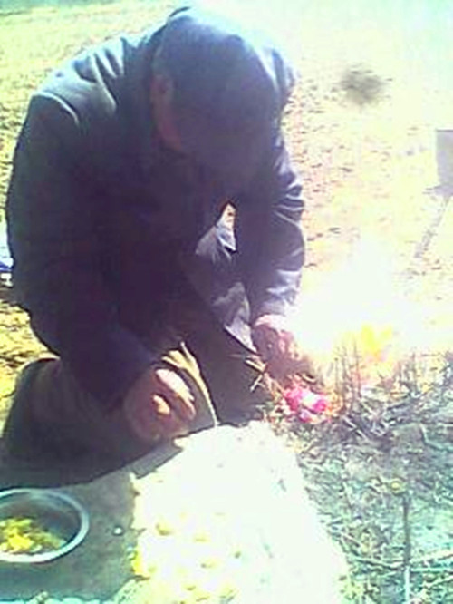到老家天已黑,我们住下了,第二天天明,黄沙漫天,狂风发了疯般的怒吼,那声音很可怕,它们似乎也被这悲伤地气氛感染了。一会儿工夫,天空竟飘起了银针雪片,天,冷的可怕。我们在三爸的坟头跪下,将事先备好的食物献上,又倒上了白酒,爸爸嘴里还念叨着:“三哥,给您送些钱,到那边买点吃的喝的。”然后,父亲又拿着铁锹在三爸的坟头添了些新土,一下下轻轻地把土拍碎,把坟修整好,给三爸一年的庇护。