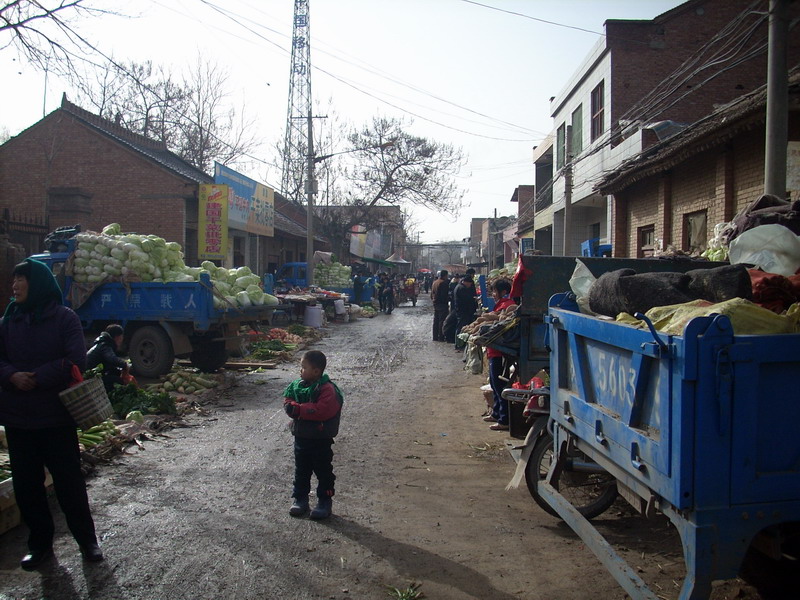 今天,我来到阳郭农贸市场赶集,市场上的小贩们一大早就来了,摆好了地摊,街道比较泥泞,行人较少.但商贩们却已经早早的来了,尤其是菜贩们,一大车的菜放在路旁。