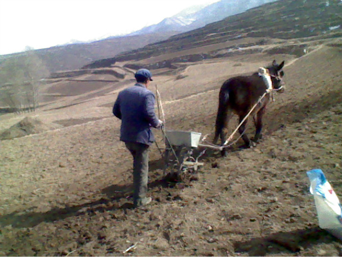 这几天,家乡的人们总是很忙碌,忙着为新一年的“丰收”打奠基,田间地头总能看到有几个人拉着推车,赶着黄牛在地里来回穿梭,身后也总是跟着几个人在地里播种下各种粮食的种子,播种下许多代表着“希望”的种子,忙碌的背影总是将人也带进忙碌的状态中去,地里辛勤耕作的黄牛在田地里一步步艰难地前行,身上所负担的重量压得老牛直喘粗气,拉犁之人也异常劳累,汗珠在眉毛之间滚动,不时发出阵阵呻吟!人们去耕作一般都比较早,一来图个凉快,二来午时地表升温,地里比较泥泞不大好耕作,因此人们总是早早出发去地里播撒“希望”的种苗。