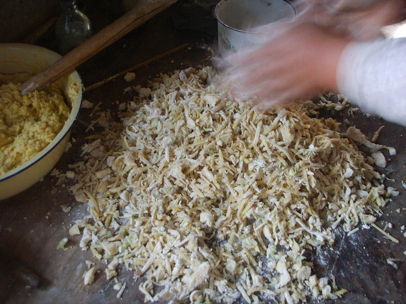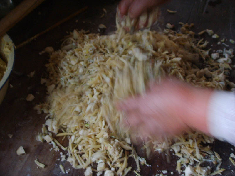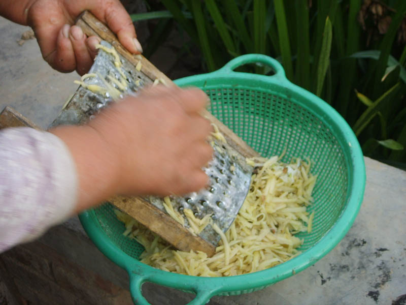 第四步:用杈子制土豆条