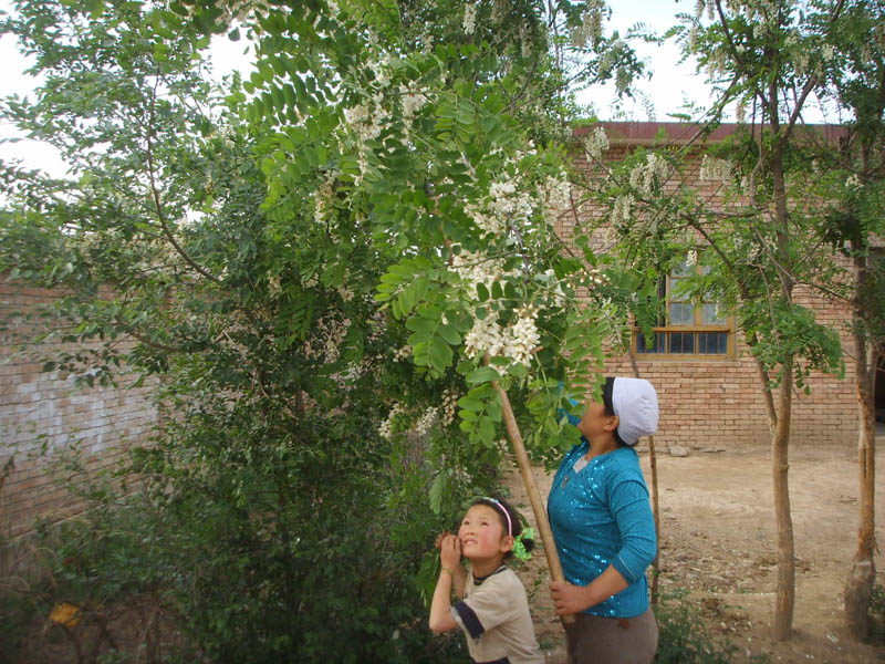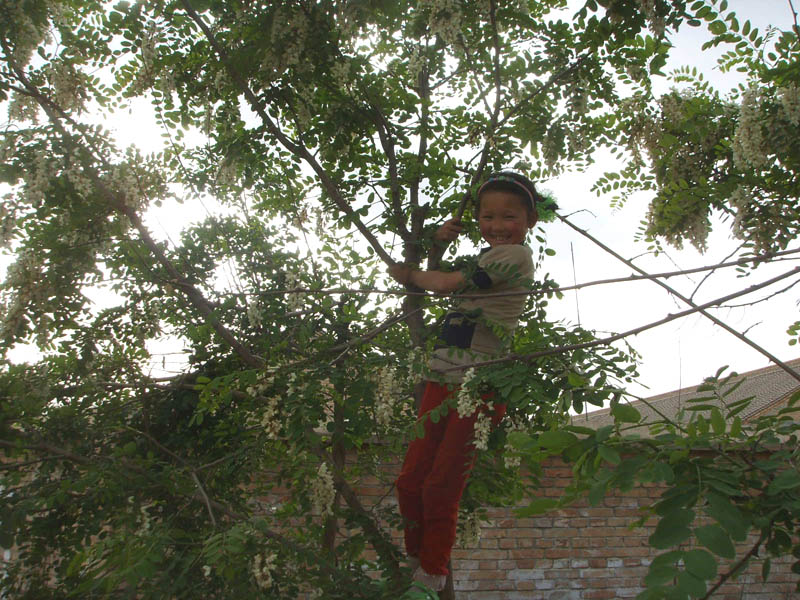 周末了,回到家里,满院香气。细看原来是我刚出生时老爸给我栽的小槐树开花了,妹妹早就上树摘下了槐花。