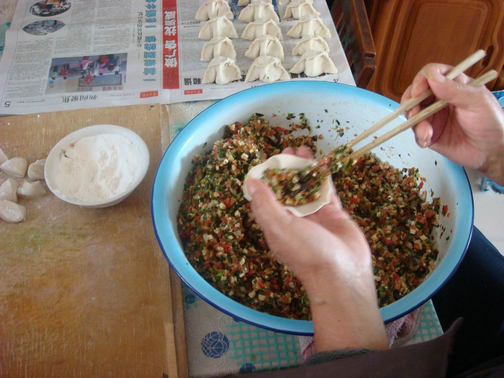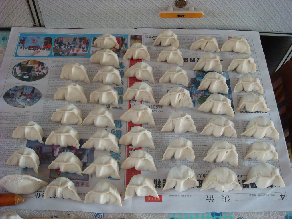 今天家里吃的红萝卜、土豆、韭菜、豆腐馅的饺子,再加上调料、盐、香油一拌,闻着都很香。看,这是爸爸在包饺子,他包的饺子馅多,有吃头,并且爸爸包饺子对张子的要求很低,即使撖的张子不圆,他也能包好,包的速度还很快,家里每次吃饺子,基本上都是爸爸一个人包就够了。