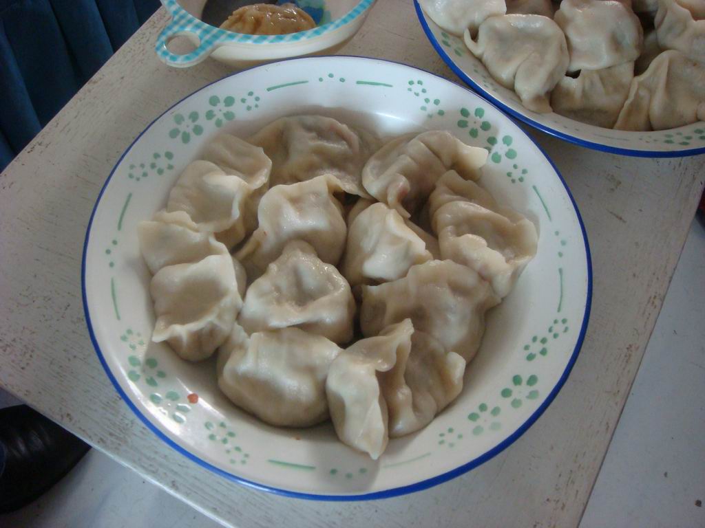 哎呀,终于等到饺子煮好了,我可已经咽了几次唾沫了,盛了点妈妈炼好的"盐水"(调好的汁,用醋、蒜、葱、辣子炝好的),醮了醮,夹起一个就往嘴里送,呀,那就一个字----"香"呀!