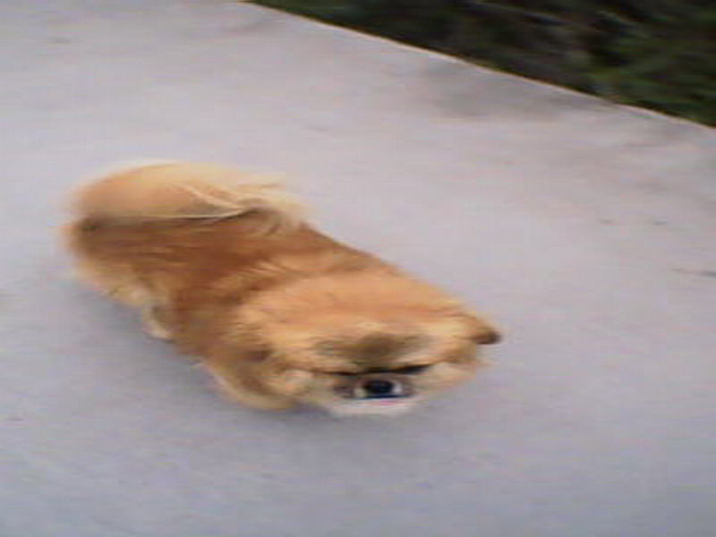 它还很活泼,经常跟着我们进进出出,就像一个跟屁虫,时时刻刻都在身边。每次爸爸骑着摩托车载我们出去时,飞飞害怕我们不让它去,所以看我们快出发时就先出去等我们。它跑得很快,跑的姿势也十分特别,跑起来头向右偏着,可身子不偏,后两条腿也十分搞笑,一起向外张开,又一起向内合拢,远看就像一个八字。