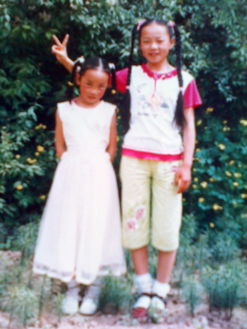 姐姐长一双大眼睛,但不幸的是姐姐眼睛近视,戴了眼镜,在我印象中,姐姐一直扎一条长长的马尾辫,她总会甩着马尾辫来逗我。